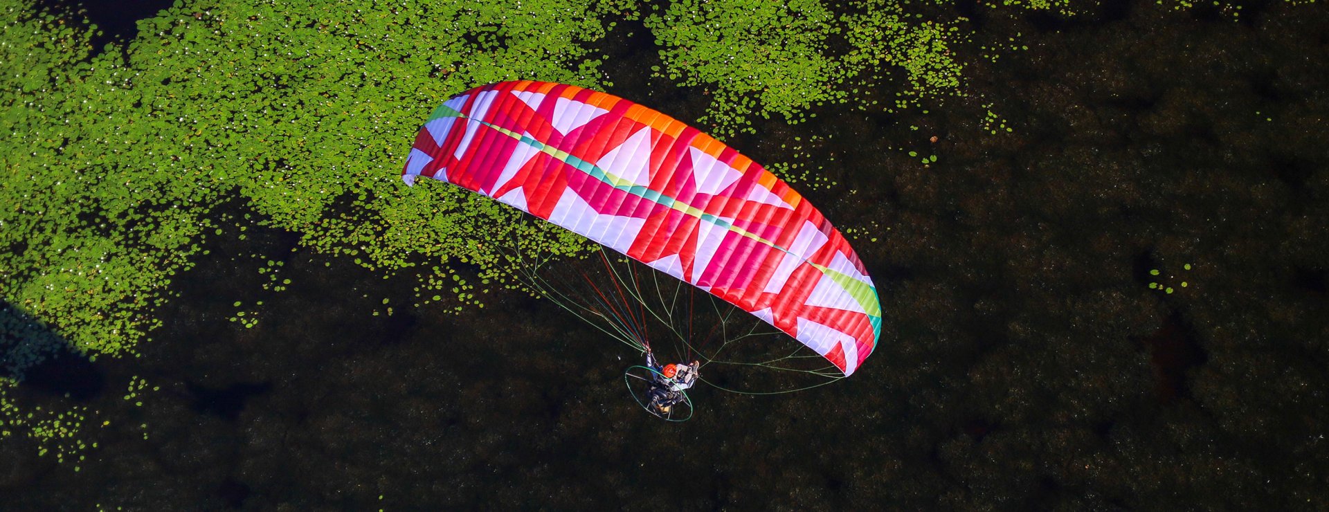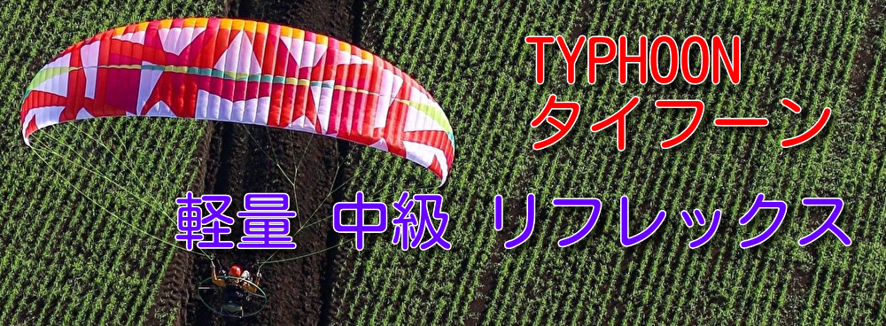 ■ "Typhoon" タイフーン 遊び心と正確さを兼ね備えたTYPHOONは、究極のアドベンチャーウィングです。軽量なセイルは、穏やかな風の中でも楽にテイクオフでき、XCパフォーマンスと美しいBGDハンドリングを実現します。